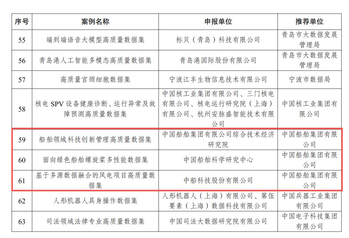 近日,國家數(shù)據(jù)局在2025中國國際大數(shù)據(jù)產(chǎn)業(yè)博覽會上發(fā)布了首批104個高質量數(shù)據(jù)集典型案例。中國船舶集團有限公司旗下綜合院申報的“船舶領域科技創(chuàng)新管理高質量數(shù)據(jù)集”、七〇二所申報的“面向綠色船舶的螺旋槳多性能數(shù)據(jù)集”、中船科技申報的“基于多源數(shù)據(jù)融合的風電項目高質量數(shù)據(jù)集”成功入選并發(fā)布。