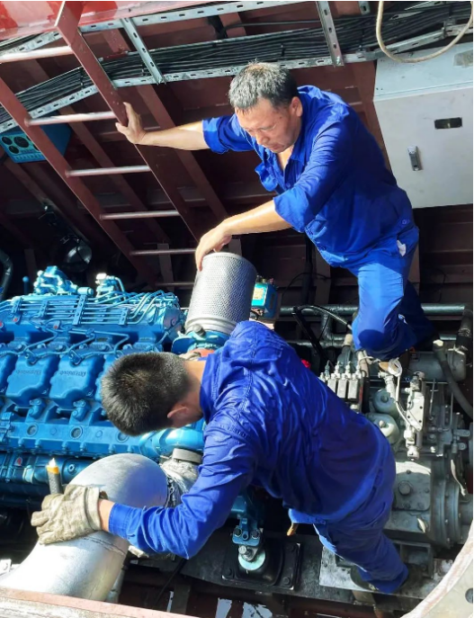 在悶熱且狹小的機(jī)艙內(nèi),一個(gè)簡(jiǎn)單的動(dòng)作,難度系數(shù)都要成倍增加,考驗(yàn)的不僅是船舶電工的體力,還有毅力。