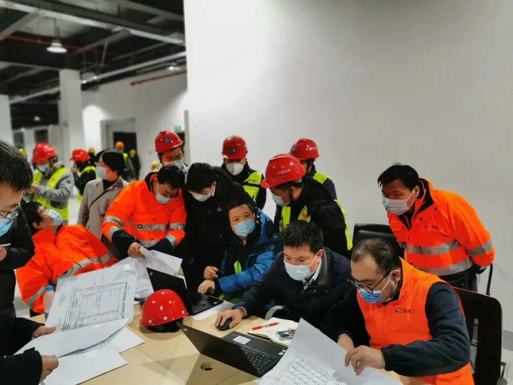 中船九院公司領(lǐng)導(dǎo)帶領(lǐng)項(xiàng)目團(tuán)隊(duì)連續(xù)多日通宵在現(xiàn)場(chǎng)工作,及時(shí)協(xié)調(diào)工地各種情況,與集團(tuán)公司相關(guān)部門并肩作戰(zhàn)、及時(shí)溝通,提高工作效能;同時(shí)堅(jiān)持實(shí)時(shí)優(yōu)化設(shè)計(jì),協(xié)調(diào)工程建設(shè)。項(xiàng)目設(shè)計(jì)負(fù)責(zé)人、中船九院副總建筑師王川第一時(shí)間組織團(tuán)隊(duì)明確職責(zé)分工,確定了現(xiàn)場(chǎng)設(shè)計(jì)、后方設(shè)計(jì)、現(xiàn)場(chǎng)管理、外場(chǎng)支持等多專業(yè)協(xié)同配合機(jī)制,確保多條線同時(shí)作戰(zhàn)、運(yùn)作高效??偣こ處燑S延驅(qū)車前往長(zhǎng)興島專送工程保障設(shè)備,長(zhǎng)興島實(shí)行“只進(jìn)不出”,他就直接加入現(xiàn)場(chǎng)設(shè)計(jì)團(tuán)隊(duì),10天沒有下島。設(shè)計(jì)團(tuán)隊(duì)中三位女設(shè)計(jì)師沈清清、胡雁、沈峻,更是巾幗不讓須眉,創(chuàng)造性地解決了暖風(fēng)系統(tǒng)設(shè)計(jì)等一系列難題,堅(jiān)守一線直到項(xiàng)目最終交付。項(xiàng)目管理團(tuán)隊(duì)的戴鳳波、徐詠春、欒海林、王后軍、屈杰、倪冬輝等人把現(xiàn)場(chǎng)當(dāng)作家,3天只在賓館住了3個(gè)小時(shí),其余時(shí)間都在車上、辦公桌上度過。項(xiàng)目部顧建章、汪凱則協(xié)調(diào)運(yùn)輸通行資源,解決了建設(shè)期間工程人員的基本飲食問題。與此同時(shí),還有更多的人在后方作戰(zhàn)斗支撐,中船九院建筑一院院長(zhǎng)曾志堅(jiān)迅速組織本部設(shè)計(jì)團(tuán)隊(duì),緊急將居家辦公的相關(guān)專業(yè)骨干召回,組成了包括張瓊、瞿駸、郭鳳群、李嘯、蔣斌等18名骨干在內(nèi),建筑、結(jié)構(gòu)、水、電、風(fēng)、經(jīng)濟(jì)各專業(yè)齊全的團(tuán)隊(duì)。之后因項(xiàng)目需要,胡雁、瞿革、瞿駸上島加入現(xiàn)場(chǎng)設(shè)計(jì)團(tuán)隊(duì)。