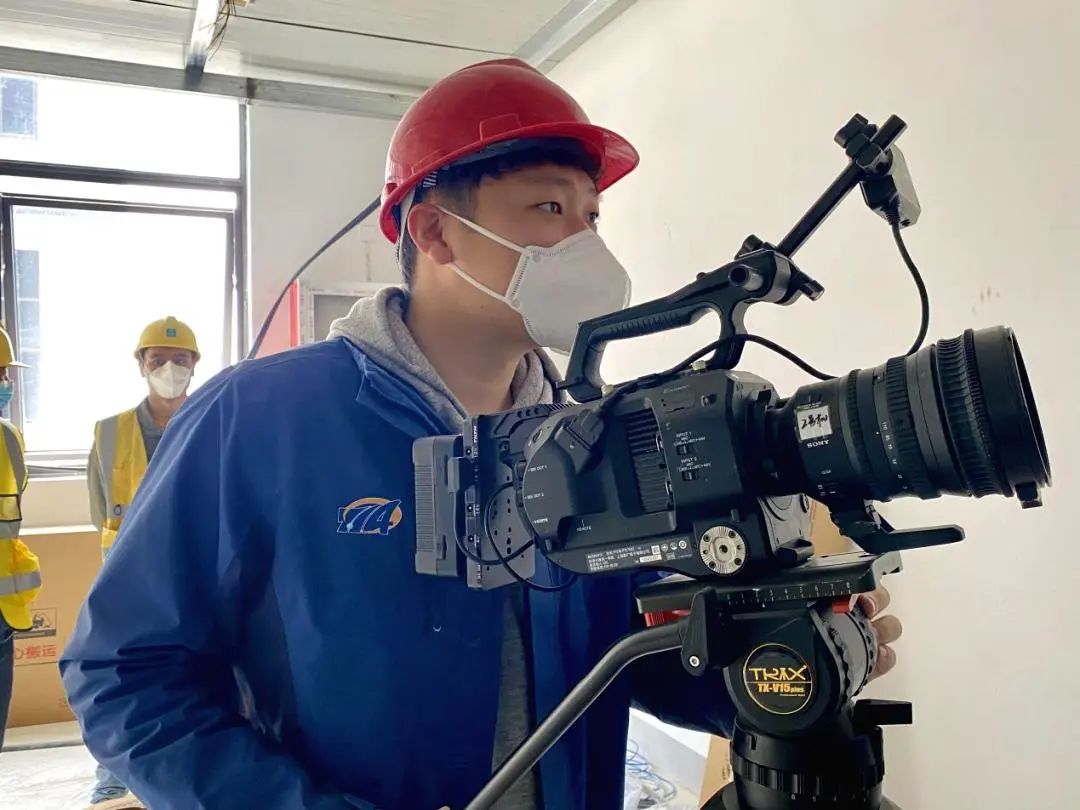 聲像保障第一時(shí)間到位。七一四所青年突擊隊(duì)員潘偉、張浩偉抵達(dá)當(dāng)晚便投入到拍攝工作中。面對(duì)上百個(gè)工作面、數(shù)千位建筑工人,潘偉、張浩偉發(fā)揚(yáng)敢打敢拼的戰(zhàn)斗精神,在現(xiàn)場(chǎng)架設(shè)了8個(gè)機(jī)位、2架無(wú)人機(jī)同時(shí)進(jìn)行拍攝。有時(shí)為了找到一個(gè)合適拍攝角度,兩人克服恐懼在高達(dá)八米的屋頂架設(shè)拍攝機(jī)位,為工程建設(shè)拍攝下了近百份寶貴的聲像資料。