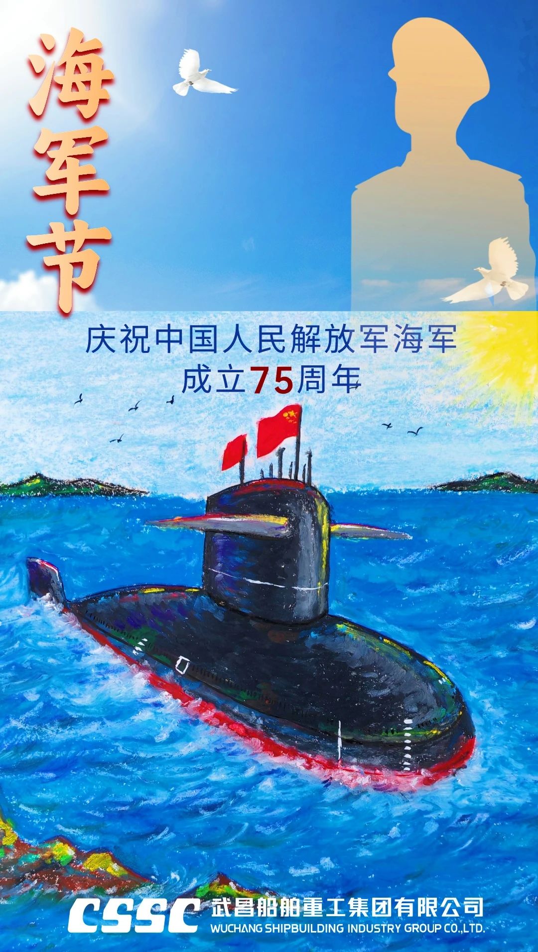 人民海軍 七十五載風雨歷程 向海圖強 乘風破浪逐夢深藍 ——大連造船(姜秉尚) ——七院(任娟) ——七〇八所(曹璐、宋卓璟) ——武昌造船(丁慧 、周建仁) ——系統(tǒng)工程研究院(邵鴻飛、姬國偉) ——廣船國際(董入豪) 英雄的艦隊向前方 筑起萬里鋼鐵海疆