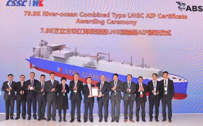 ????中國船舶集團(tuán)所屬滬東中華造船(集團(tuán))有限公司推出了包括LNG-FSRU船、ARC7破冰型LNG船、350MV LNG發(fā)電船、V2.0版18600立方米LNG加注船在內(nèi)的6款新船為中國船舶集團(tuán)代言。12月4日,滬東中華獲得了由美國船級社頒發(fā)的全球首例7.99萬立方米江海聯(lián)運(yùn)型LNG船AiP證書、由DNV GL船級社頒發(fā)的全球最大25000TEU集裝箱船AiP證書。