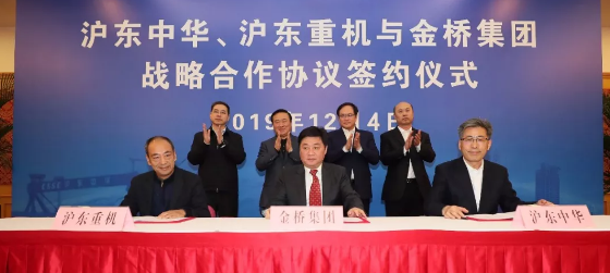 ????在楊金成、翁祖亮、馮永強(qiáng)、杭迎偉的共同見(jiàn)證下,中國(guó)船舶集團(tuán)旗下滬東中華造船(集團(tuán))有限公司、滬東重機(jī)有限公司與上海金橋(集團(tuán))有限公司簽訂了戰(zhàn)略合作協(xié)議。