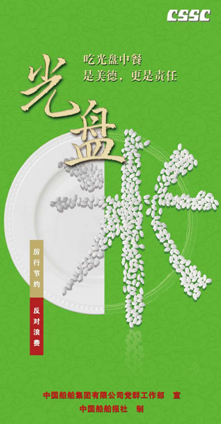 勤儉節(jié)約是中華民族的傳統(tǒng)美德,也是中國(guó)共產(chǎn)黨的優(yōu)良作風(fēng)。為深入貫徹落實(shí)習(xí)近平總書記重要指示精神,中國(guó)船舶集團(tuán)黨組對(duì)制止餐飲浪費(fèi)作出全面部署,要求集團(tuán)公司廣大黨員干部在厲行節(jié)約、反對(duì)浪費(fèi)方面走在前列、作出表率,大力弘揚(yáng)勤儉節(jié)約的光榮傳統(tǒng)。