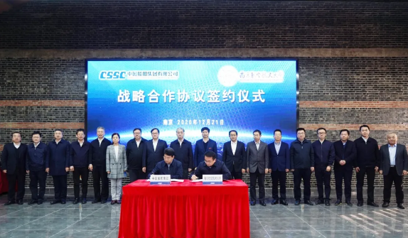 12月21日,中國(guó)船舶集團(tuán)有限公司在南京分別與南京航空航天大學(xué)、江蘇科技大學(xué)簽署戰(zhàn)略合作協(xié)議。中國(guó)船舶集團(tuán)黨組書(shū)記、董事長(zhǎng)雷凡培,黨組副書(shū)記、總經(jīng)理?xiàng)罱鸪桑h組成員、副總經(jīng)理錢建平、杜剛,南航黨委書(shū)記鄭永安,黨委副書(shū)記、校長(zhǎng)單忠德,江科大黨委書(shū)記葛世倫,黨委副書(shū)記、校長(zhǎng)周南平等領(lǐng)導(dǎo)出席簽約儀式。