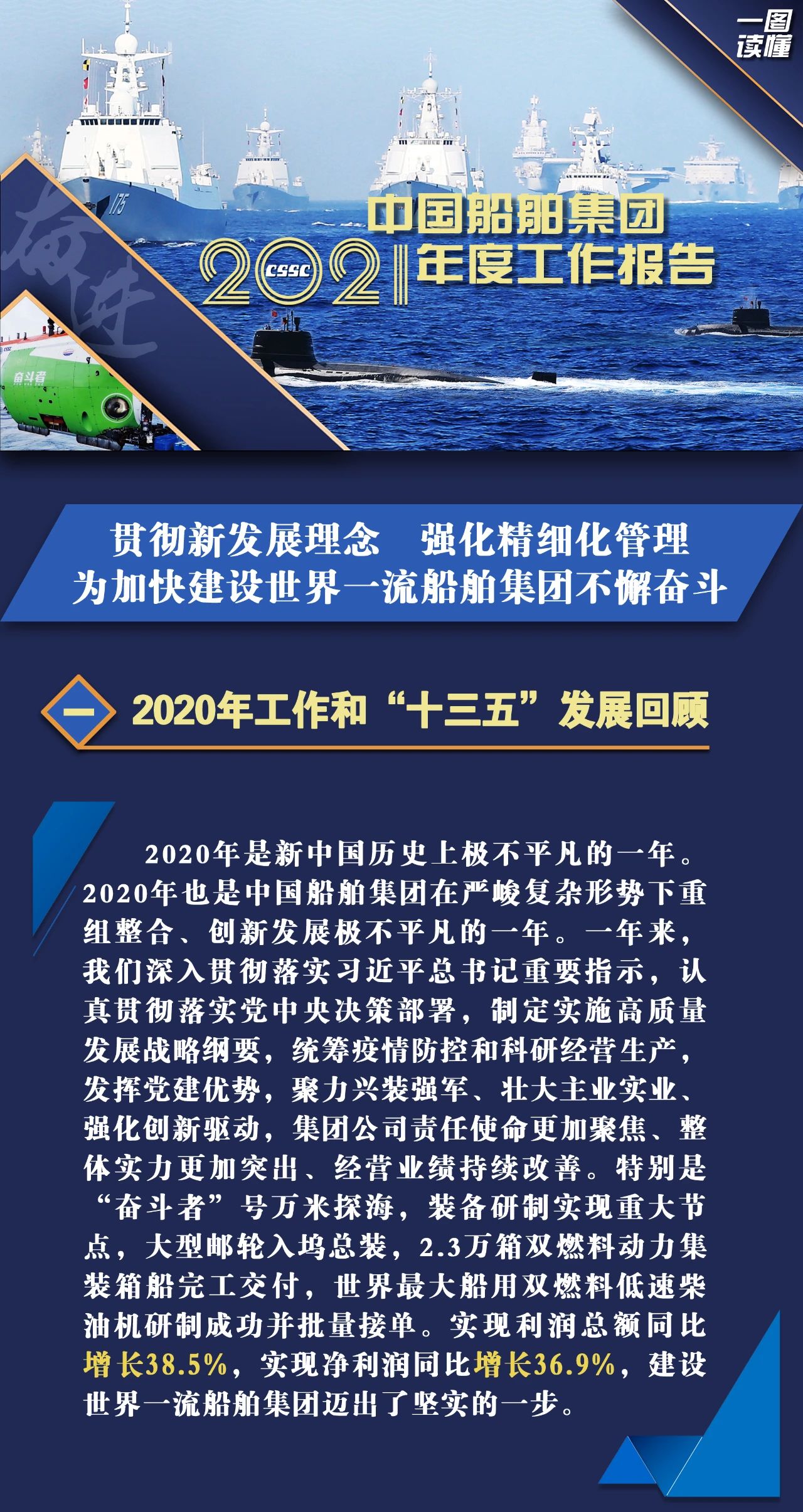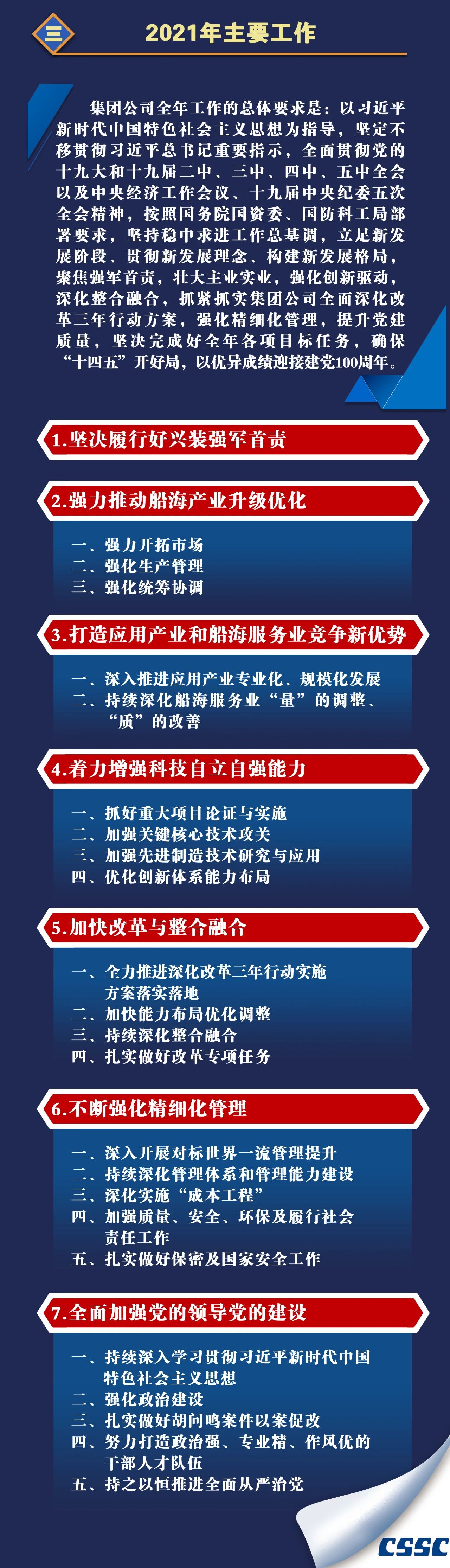 1月27日,在中國船舶集團(tuán)有限公司2021年度工作會議上,中國船舶集團(tuán)黨組書記、董事長雷凡培作了題為《貫徹新發(fā)展理念 強(qiáng)化精細(xì)化管理 為加快建設(shè)世界一流船舶集團(tuán)不懈奮斗》的工作報告。