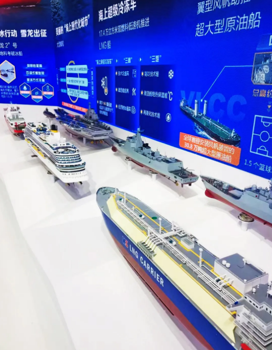 這次中國船舶集團展區(qū)以“向海圖強,創(chuàng)新引領”為主題,以“全面建設世界一流船舶集團”的戰(zhàn)略目標和“引領行業(yè)發(fā)展、支撐國防建設、服務國家戰(zhàn)略”的企業(yè)使命為主線,圍繞具有代表性、突破性、標志性、引領性的自主品牌,以及高質(zhì)量裝備和工程項目,全面展示集團公司在穩(wěn)定經(jīng)濟發(fā)展、帶動科技創(chuàng)新、服務民生保障、推動中國制造走向世界進程中所取得的成就。