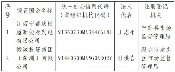 長期以來,有不法分子通過偽造相關(guān)材料等方式,將企業(yè)注冊為我集團(tuán)下屬子公司,以我集團(tuán)及其下屬子公司名義開展業(yè)務(wù)。經(jīng)我集團(tuán)核實(shí),以下公司及其下設(shè)各級子公司均為假冒國企,與我集團(tuán)無任何隸屬或股權(quán)關(guān)系,也不存在任何投資、合作、業(yè)務(wù)等關(guān)系,其一切行為均與我集團(tuán)無關(guān)。請社會各界提高警惕,注意防范風(fēng)險,如發(fā)現(xiàn)其違法犯罪行為,請盡快到公安機(jī)關(guān)報(bào)案。