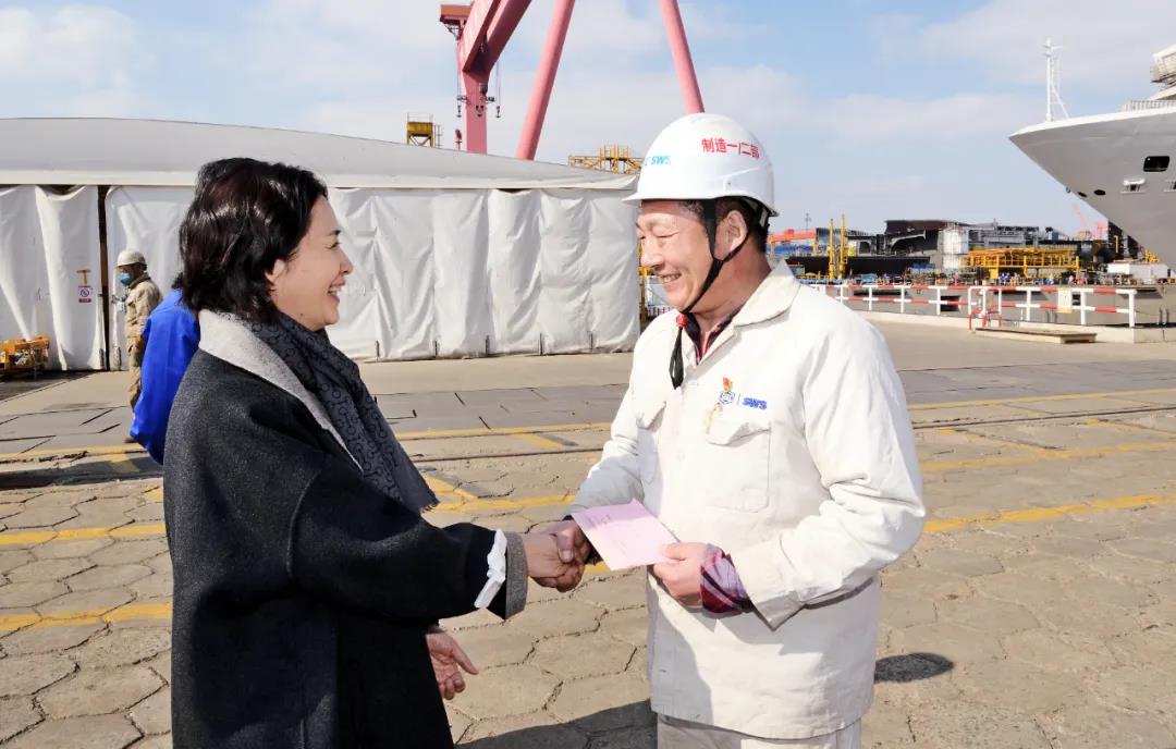 看望慰問期間,各位黨組成員與大家深入交談,詳細(xì)了解大家的生活和工作情況,對大家為集團(tuán)公司改革發(fā)展作出的貢獻(xiàn)表示感謝,并代表集團(tuán)公司黨組祝大家新春快樂、身體健康、闔家幸福。各位黨組成員表示,2021年,在以習(xí)近平同志為核心的黨中央堅強領(lǐng)導(dǎo)下,中國船舶集團(tuán)深入學(xué)習(xí)貫徹習(xí)近平總書記重要講話和重要指示批示精神,扎實開展黨史學(xué)習(xí)教育,牢記強軍首責(zé)、聚焦主業(yè)實業(yè),加快科技自立自強,深入實施改革三年行動,不斷強化精細(xì)化管理,平穩(wěn)高效完成總部遷駐上海,三大造船指標(biāo)位居世界第一,實現(xiàn)利潤總額同比增長24.5%、凈利潤同比增長27.7%,經(jīng)濟(jì)效益創(chuàng)歷史最好水平,獲得中央企業(yè)負(fù)責(zé)人經(jīng)營業(yè)績考核、黨建責(zé)任制考核、董事會考核三個“A級”。2022年,中國船舶集團(tuán)將堅持以習(xí)近平新時代中國特色社會主義思想為指導(dǎo),持續(xù)深入貫徹落實習(xí)近平總書記重要講話和重要指示批示精神,堅持穩(wěn)中求進(jìn)工作總基調(diào),完整、準(zhǔn)確、全面貫徹新發(fā)展理念,服務(wù)構(gòu)建新發(fā)展格局,穩(wěn)增長、強管理、健體系、防風(fēng)險,堅決履行強軍首責(zé),加快科技自立自強,提升主業(yè)實業(yè)競爭力,深化重組整合融合,決戰(zhàn)決勝改革三年行動,充分發(fā)揮黨建引領(lǐng)保障作用,加快建設(shè)世界一流船舶集團(tuán),以優(yōu)異成績迎接黨的二十大勝利召開。