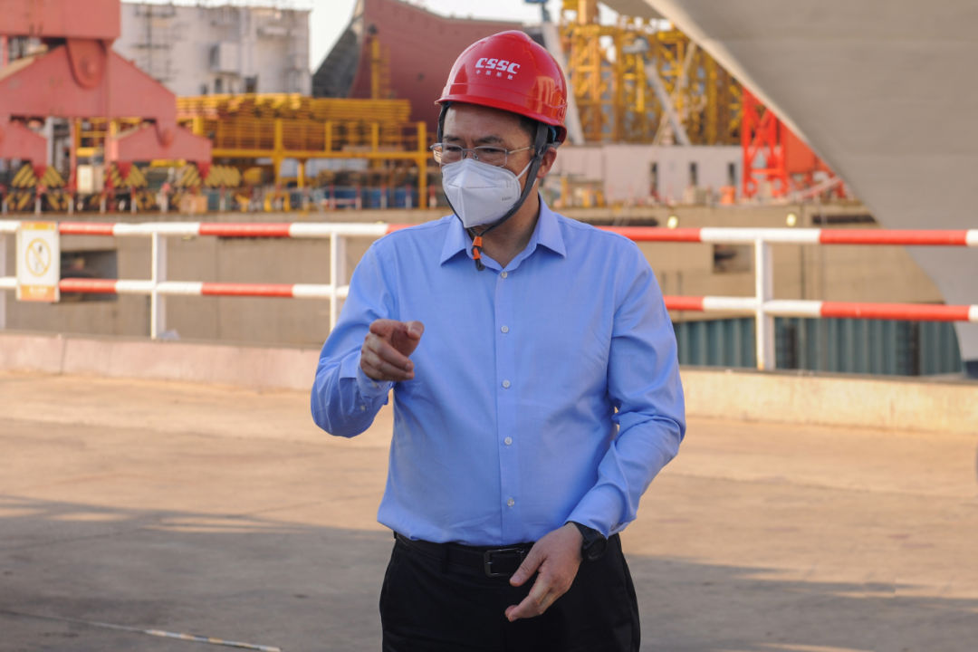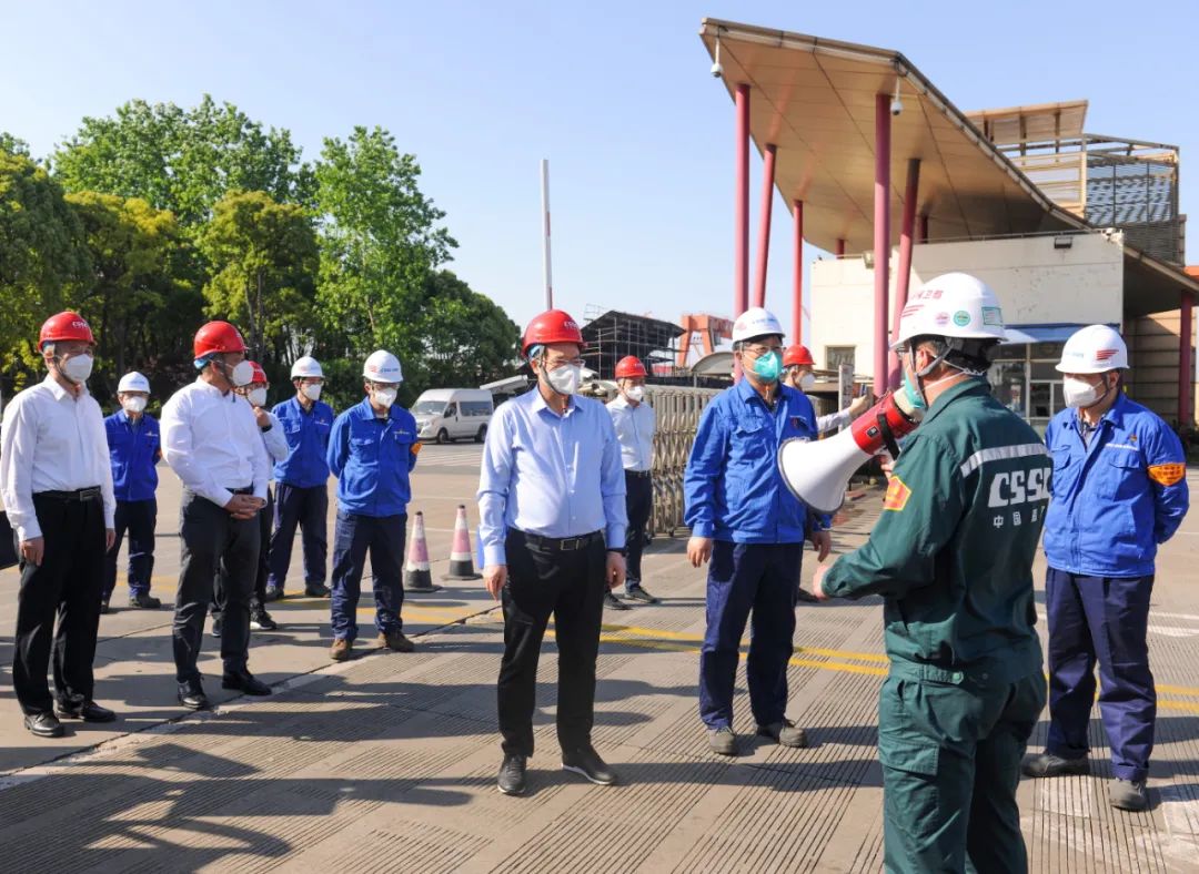 5月5日,中國船舶集團(tuán)有限公司黨組副書記、總經(jīng)理?xiàng)罱鸪傻郊瘓F(tuán)公司旗下上海外高橋造船有限公司調(diào)研疫情防控和復(fù)工復(fù)產(chǎn)工作。中國船舶集團(tuán)黨組成員、副總經(jīng)理孫偉參加調(diào)研。