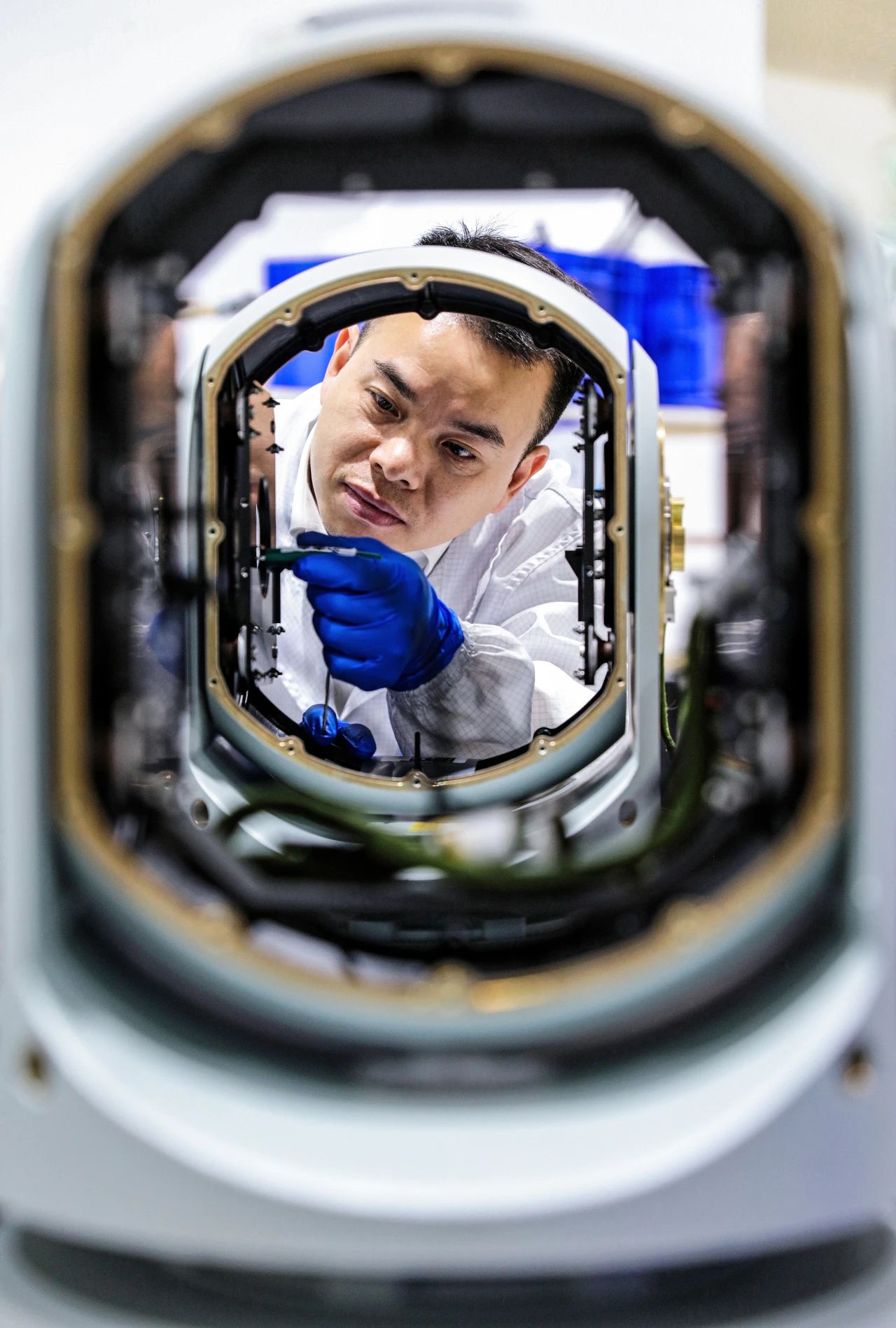 七一七所技術(shù)人員正在裝調(diào)光軸,確保光路的穩(wěn)定傳導(dǎo),在精確裝調(diào)中堅守本心、求精求新,以匠心確保產(chǎn)品精度。
