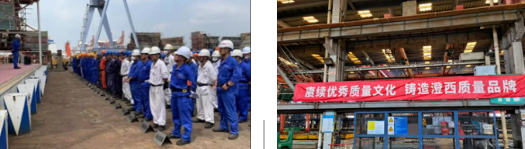 中船澄西組織各部門、車間舉行質(zhì)量誓師大會、質(zhì)量承諾簽名等活動,進一步強化全員“質(zhì)量至上”意識,將質(zhì)量責任落在筆下、放到心中。質(zhì)量部牽頭開展工程承包商質(zhì)量管理體系運行“回頭看”專項檢查活動,通過“把脈體檢”,促進施工“主力軍”不斷規(guī)范質(zhì)量管理工作,以管理能力提升促進質(zhì)量工作提高。