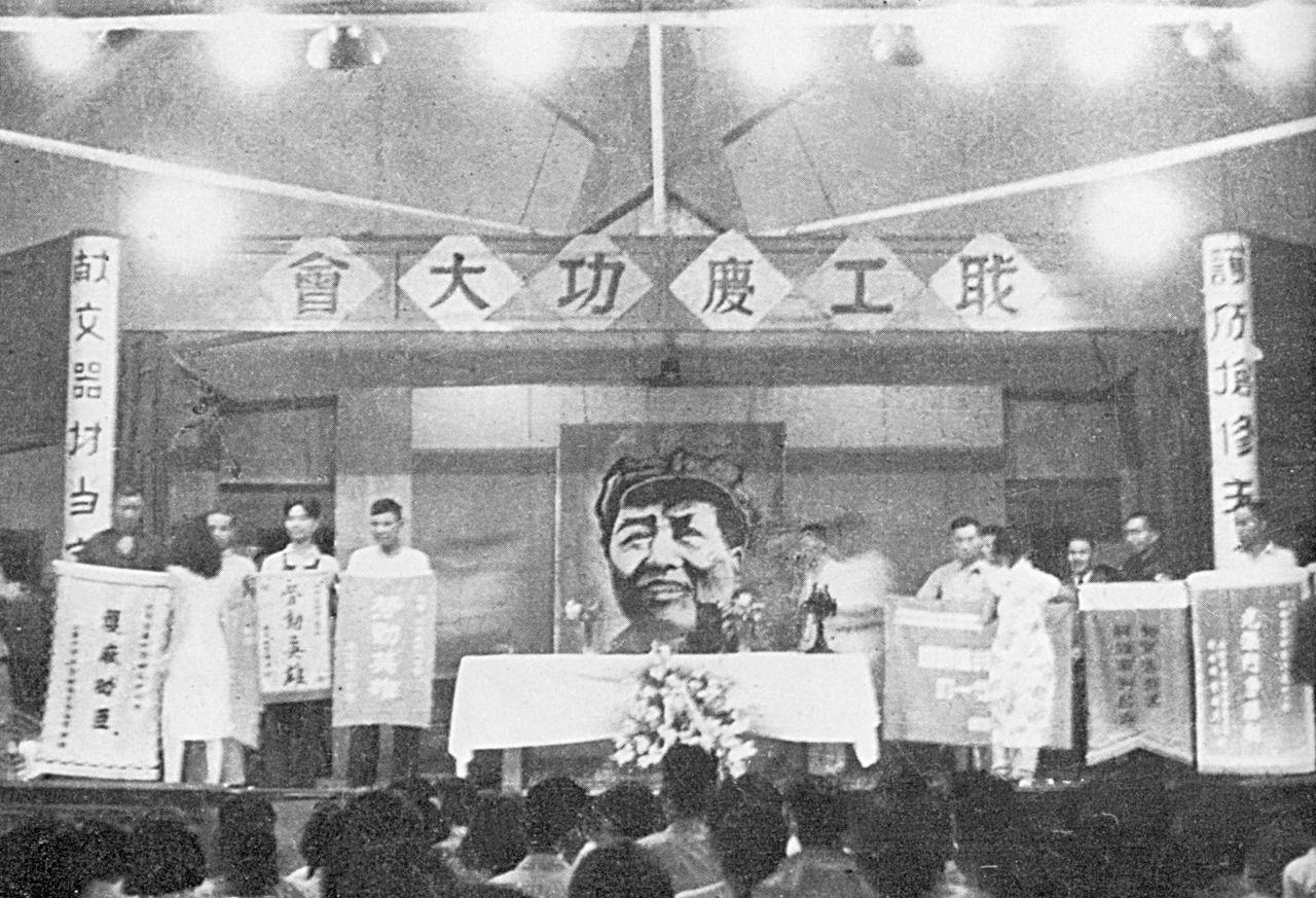 1949年7月上海,1949年7月23日,江南造船所舉行“職工慶功大會(huì)”。上海市市長(zhǎng)兼軍管會(huì)主任陳毅、副市長(zhǎng)曾山、華東海軍司令員張愛萍、上海市總工會(huì)主席劉長(zhǎng)勝等出席了大會(huì)。會(huì)上總結(jié)修復(fù)廠房設(shè)備的經(jīng)驗(yàn),宣布恢復(fù)生產(chǎn)表彰有功人員。全所有 134人被評(píng)為一、二、三等功臣受到表彰。