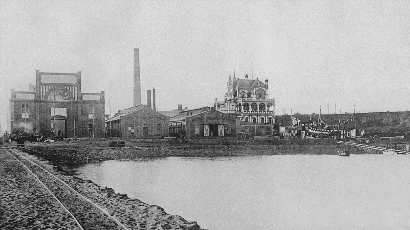 1898年青島,1898年10月,德國(guó)造船技師弗蘭克?奧斯特在青島創(chuàng)建了北海造船最早的前身修船所。修船所規(guī)模雖小,但它標(biāo)志著青島船舶工業(yè)的先聲和青島第一代產(chǎn)業(yè)工人的誕生。
