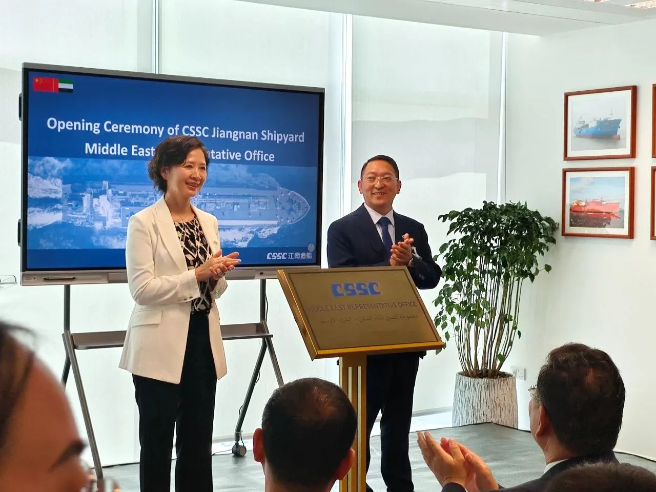 10月10日,中國船舶集團江南造船中東代表處揭牌儀式,在阿聯(lián)酋首都阿布扎比舉行。