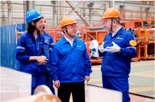 王國強深入科研生產一線,察看了船塢、智能生產線、重點實驗室和產品,進行了安全生產檢查,與一線科研人員、員工進行深入交流,聽取了生產經營、科技研發(fā)、人才培養(yǎng)、黨的建設等情況匯報。