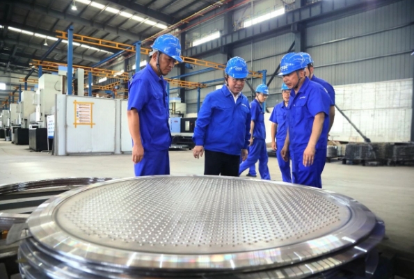 王國強(qiáng)深入科研生產(chǎn)一線,調(diào)研了相關(guān)車間、實(shí)驗(yàn)室、勞模創(chuàng)新工作室,察看了智能制造中心、重點(diǎn)產(chǎn)品、相關(guān)技術(shù)進(jìn)展;慰問了勞模工匠、一線員工,與他們就現(xiàn)場(chǎng)管理看板優(yōu)化、工藝改善等交流互動(dòng),勉勵(lì)他們健康生活、快樂工作,叮囑相關(guān)單位負(fù)責(zé)人要做好防暑降溫工作;聽取了相關(guān)二級(jí)管理單位生產(chǎn)經(jīng)營(yíng)、深化改革、科技創(chuàng)新、人才培養(yǎng)、黨的建設(shè)等方面情況匯報(bào)。