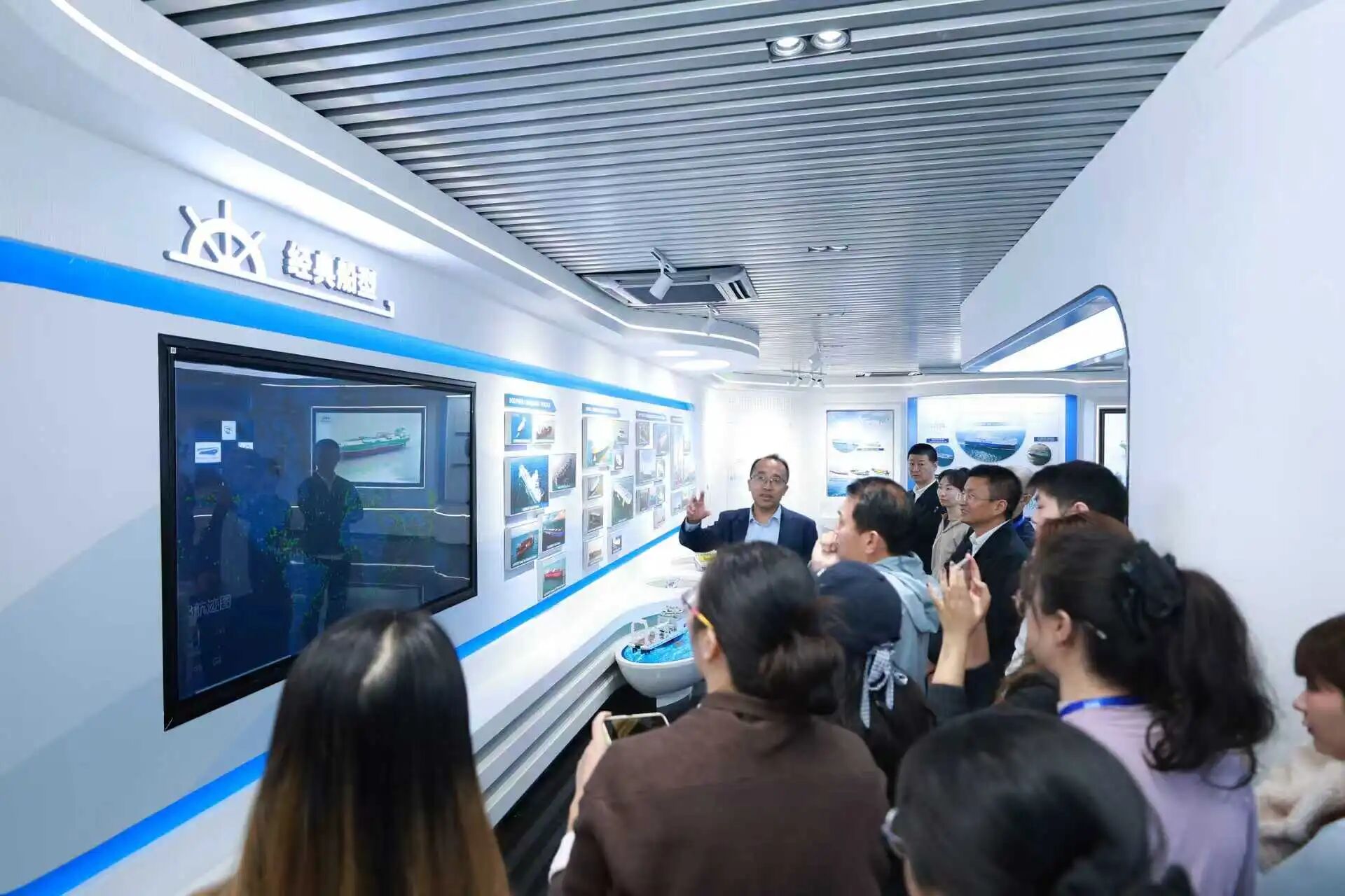 媒體代表團(tuán)先后參觀了上船院展廳及智能船舶實驗室,并聽取了相關(guān)專家對院船型品牌與低碳零碳技術(shù)發(fā)展、數(shù)智賦能船舶研發(fā)設(shè)計等專題的講解,感受著上船院深厚的科技底蘊和創(chuàng)新的澎湃動力。
