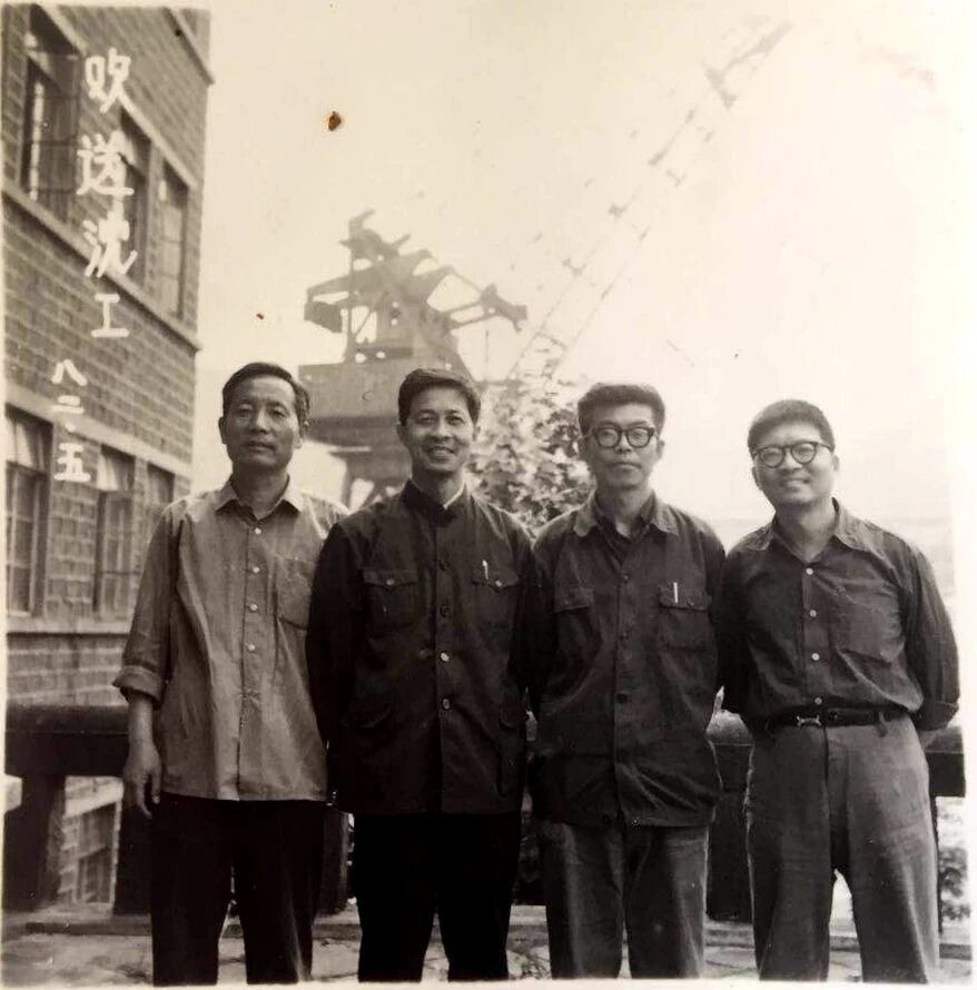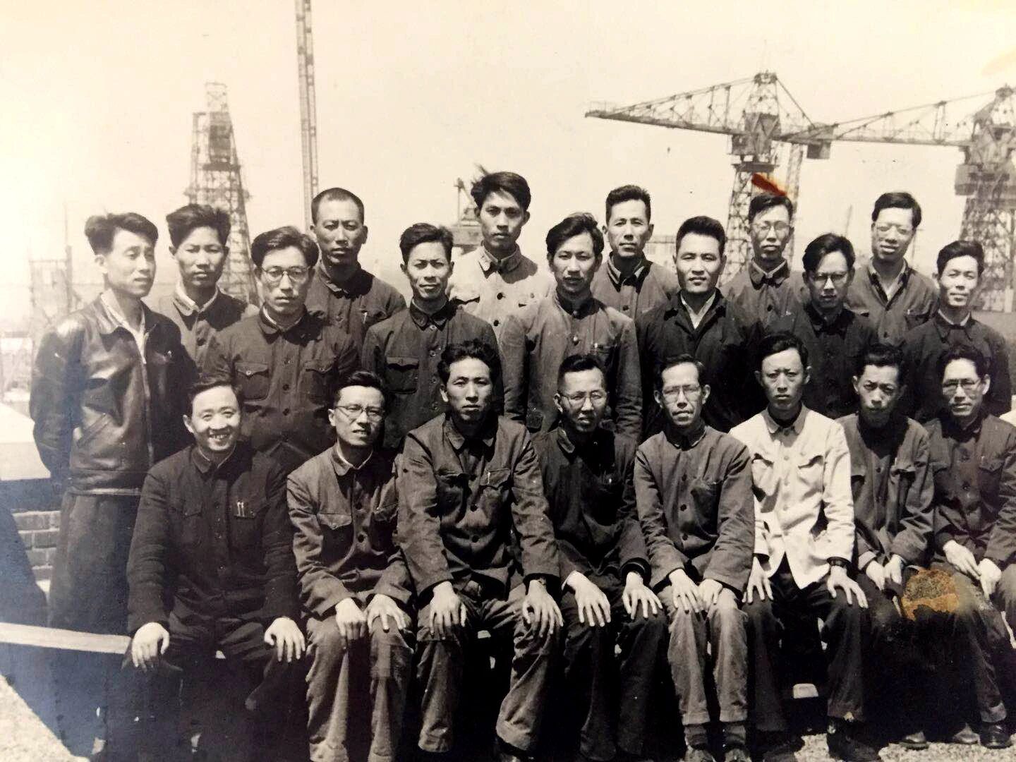 20世紀60年代沈聞孫(二排左三)與同事在造船現(xiàn)場合影