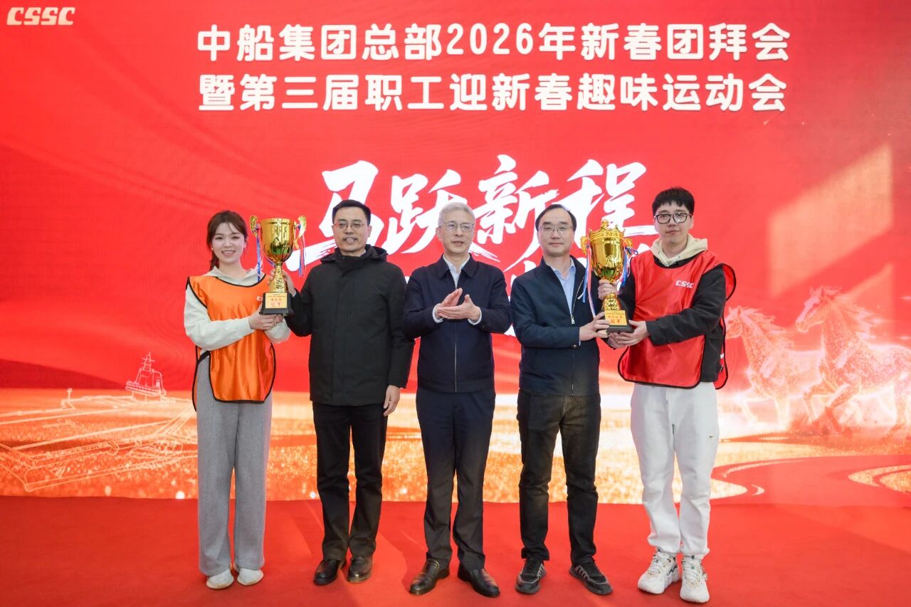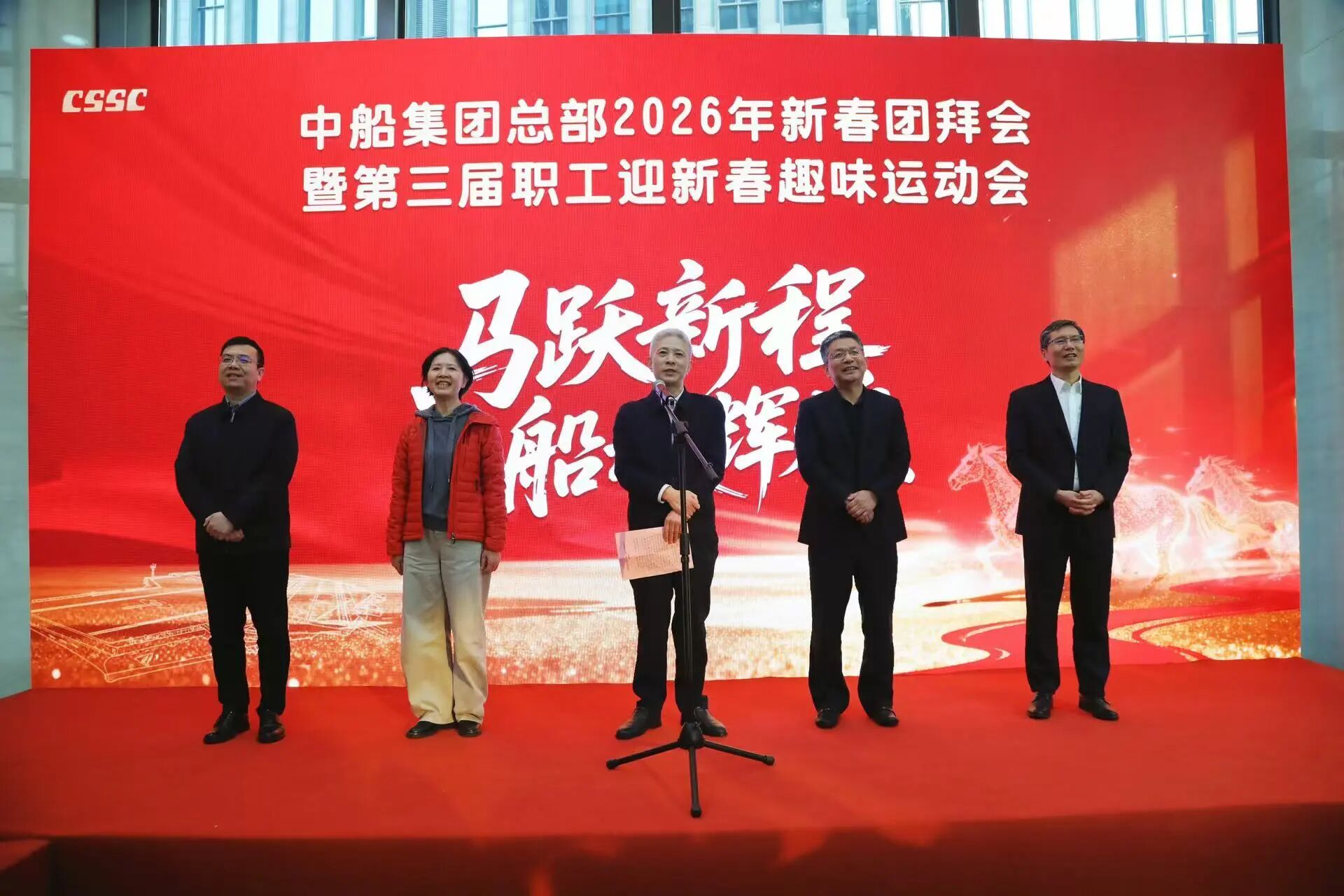 金蛇辭歲,駿馬迎春。在農(nóng)歷馬年新春佳節(jié)來(lái)臨之際,2月11日,中國(guó)船舶集團(tuán)有限公司總部舉行2026年新春團(tuán)拜會(huì)暨第三屆職工迎新春趣味運(yùn)動(dòng)會(huì)。中船集團(tuán)黨組書(shū)記、董事長(zhǎng)徐鵬代表中船集團(tuán)黨組向辛勤耕耘、篤行實(shí)干的集團(tuán)全體干部職工,向始終相伴、傾情付出的全集團(tuán)家屬們,致以最衷心的感謝和最誠(chéng)摯的問(wèn)候。黨組副書(shū)記、董事、集團(tuán)工會(huì)主席賈海英,黨組成員、總會(huì)計(jì)師朱永紅,黨組成員、副總經(jīng)理彭原璞、胡賢甫出席團(tuán)拜會(huì)。