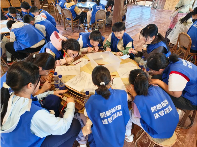 5天的西雙版納之行,是“綠色生命”與“多彩文明”的雙重浸潤(rùn)。在中船集團(tuán)對(duì)口幫扶的勐臘縣,少年們深入望天樹景區(qū)與中科植物園,那里是生命的狂歡派對(duì),每一種植物、動(dòng)物都在用自己的方式講述生存的智慧。在會(huì)龍村,來自15個(gè)城市的50多名營員與當(dāng)?shù)厍嗌倌杲Y(jié)下深厚友誼。篝火映照下,大家攜手起舞,互贈(zèng)精心準(zhǔn)備的禮物,一起過集體生日。這份跨越山海的相遇,不僅是一場(chǎng)聯(lián)歡,更是一堂生動(dòng)的民族團(tuán)結(jié)進(jìn)步教育課,讓“像石榴籽一樣緊緊抱在一起”的共同體意識(shí),在年輕一代心中生根發(fā)芽。勐臘縣文旅局局長(zhǎng)王彥贊嘆:船舶少年走進(jìn)勐臘研學(xué),“是深藍(lán)報(bào)國夢(mèng)與邊境煙火氣的美好相遇,讓少年意氣與家國情懷在此同頻共振”。