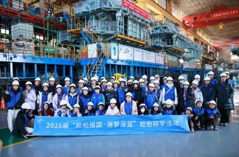 從與船舶工業(yè)共生共榮的海濱城市大連,到獨(dú)具北國風(fēng)情的冰城哈爾濱,少年們先后走進(jìn)大連造船、中船發(fā)動(dòng)機(jī)所屬大連船柴、七〇三所等“國之重器”誕生地,近距離觀摩船舶制造的精密流程,聆聽科研工作者攻堅(jiān)克難的奮斗故事;從萬噸巨輪的龍骨鋪設(shè)到核心發(fā)動(dòng)機(jī)的匠心鍛造,從船舶科技的迭代升級(jí)到海防力量的穩(wěn)步增強(qiáng),在直觀感受中深化對(duì)“海洋強(qiáng)國”戰(zhàn)略的理解,體悟“船舶人” 熔鑄在鋼鐵艦船中的責(zé)任擔(dān)當(dāng)與代代相傳的工匠精神與創(chuàng)新力量。