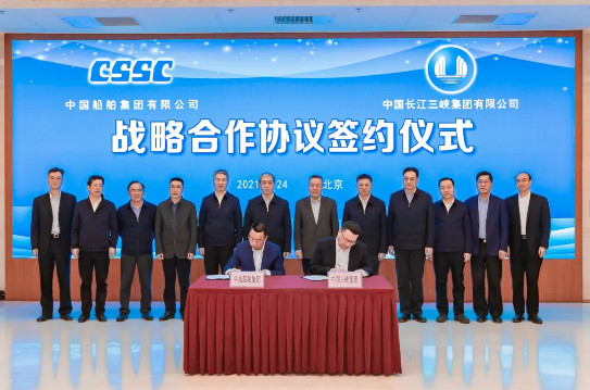 雙方表示,同為央企,中國船舶集團與三峽集團擁有良好的合作基礎、豐碩的合作成果和廣闊的合作前景。此次簽署戰(zhàn)略合作協(xié)議是雙方深入貫徹落實習近平總書記重要講話和重要指示批示精神、黨的十九屆五中全會精神,共同實現(xiàn)高質量發(fā)展的重大舉措。雙方將以此為契機,進一步加強交流對接,積極探索在清潔能源等更多領域開展深層次合作,攜手助力長江大保護和打贏藍天保衛(wèi)戰(zhàn),共同為“一帶一路”建設和長江經(jīng)濟帶發(fā)展、海洋強國建設、制造強國建設、科技強國建設等國家重大戰(zhàn)略的實施作出新的更大貢獻。