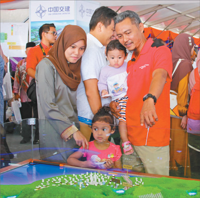 聽聞東海岸鐵路項目開工的消息,9日上午,許多彭亨州當?shù)鼐用裆碇?jié)日里的喜慶服裝,扶老攜幼趕來參加儀式,能容納5000人的現(xiàn)場被擠得滿滿當當。在開工儀式特別設置的展示區(qū),他們在鐵路信息介紹展板和模擬線路沙盤旁駐足觀看、拍照留念,喜悅之情溢于言表。