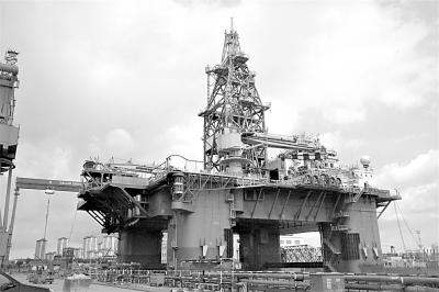 大連船舶重工集團(tuán)海洋工程有限公司建造的半潛式鉆修井平臺(tái),標(biāo)注著中國(guó)制造新高度。本報(bào)記者 馮蕾攝/光明圖片