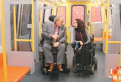 “現(xiàn)在,平生第一次,我不再需要別人幫我進(jìn)到車廂里了。這種獨立性對我來講至關(guān)重要。”馬薩諸塞州波士頓地鐵老乘客懷特先生坐著輪椅在車廂里溜達(dá)了一圈,對地鐵新車充滿期待。當(dāng)?shù)貢r間4月3日,在美國波士頓舉行的橙線地鐵模型車首次展出活動上,美國民眾感受了來自中國的地鐵車廂。更寬敞、美觀,設(shè)計更加人性化,讓美國民眾為之點贊?!败噹麅?nèi)外側(cè)都有專門的按鈕,可以讓坐在輪椅里的人在上、下車的時候直接啟動車廂底部的專用輪椅車平板,通行完全無障礙?!睉烟叵壬f。