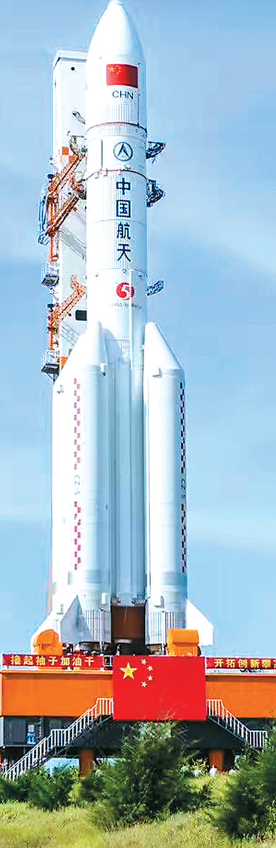 長征五號在向發(fā)射架轉運中(資料圖片) 新華社發(fā)