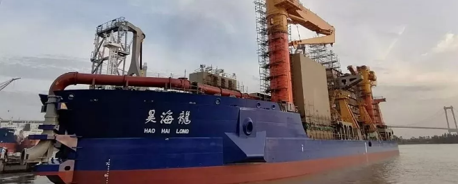 10月31日,黃埔文沖分別為美國Del Monte公司建造的600FEU全冷箱集裝箱船1號船和佛山市盈昊泰貿(mào)易有限公司建造的7800千瓦自航絞吸式挖泥船順利出塢。7800千瓦自航絞吸式挖泥船總長148米,最大挖深38米,配置了挖巖、挖黏土和挖沙等3種不同類型的絞刀,適用于挖掘淤泥、黏土、密實(shí)砂質(zhì)土、礫石、強(qiáng)風(fēng)化巖以及抗壓強(qiáng)度在50兆帕以內(nèi)的中弱風(fēng)化巖; 配備雙槳、雙轉(zhuǎn)動導(dǎo)流管、全電力驅(qū)動裝置,總裝機(jī)功率達(dá)25260千瓦,為亞洲最大功率自航絞吸式挖泥船,是我國新一代沿海水域、港口、航道疏浚、吹填的“神兵利器”。