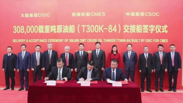 ????11月8日,大船集團(tuán)為招商輪船建造的30萬噸超大型油船(VLCC)“凱?!碧柡炞纸还?。