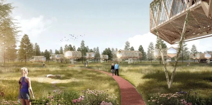 ????“棠上人家”方案以“浮木”為概念,旨在創(chuàng)造一種漂浮于自然之上、如樹木般生長(zhǎng)的建筑形態(tài)。設(shè)計(jì)以鄉(xiāng)村建設(shè)的天然環(huán)境保護(hù)和不規(guī)則點(diǎn)狀供地特點(diǎn)為切入點(diǎn),提出立足鄉(xiāng)村、面向未來(lái)的輕型建造策略,對(duì)結(jié)構(gòu)選型、空間組合、表皮構(gòu)造等方面進(jìn)行研究,打造綠色生態(tài)的新型鄉(xiāng)村建筑形態(tài)。