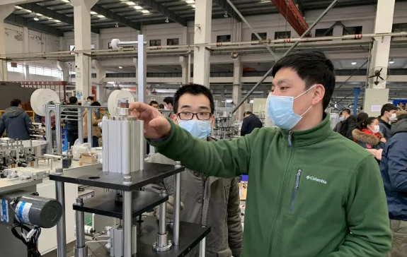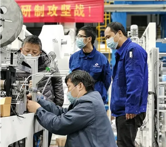????帶隊逆行的是鵬力塑造副總經(jīng)理王仕杰,一人承擔(dān)所有的外圍協(xié)調(diào)工作,不僅管好技術(shù)團隊的吃住行和安全防疫工作,還找到了非常緊缺的試機無紡布原料和口罩耳繩焊接機,極大地支撐了后續(xù)研制生產(chǎn)工作。
