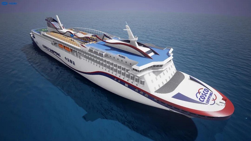 中遠海運1370客位客滾船(效果圖),由中國船舶集團所屬上海船院設計、廣船國際建造