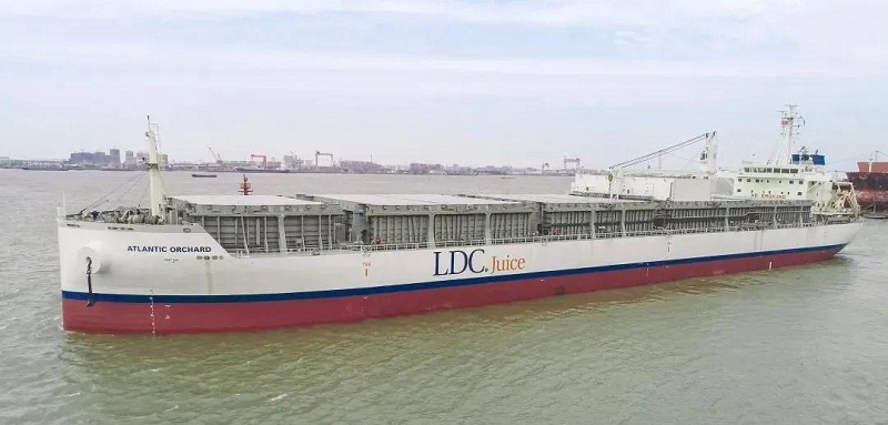 ????該船可以裝載19500立方米橙汁,大約重2萬噸,按照和水一樣的密度粗略計算,以裝滿500毫升一瓶為基準(zhǔn),該船滿載可裝4000萬瓶500毫升的橙汁,裝載運輸能力超強大!這艘船就好比一個海上移動的“大冰柜”,15個液貨罐均采用食品級絕緣不銹鋼材料,可裝載零攝氏度橙汁和零下10攝氏度濃縮橙汁,液貨艙始終保持低溫狀態(tài),確保不受細菌污染。