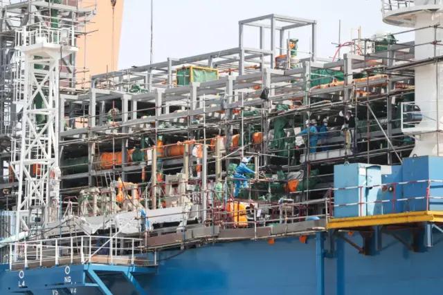 ????總裝一部還針對FRU最核心的液貨系統(tǒng)調(diào)試、發(fā)電機柴油及燃氣模式調(diào)試推進,安排調(diào)試骨干一對一重點跟蹤,努力克服技術屏障;同時通過自主調(diào)試、獨立調(diào)試完成了行車、空壓機、火警系統(tǒng)、廣播系統(tǒng)、應急發(fā)電機、舷梯、壓力水柜等10多項設備、系統(tǒng)的調(diào)試,朝著交船目標奮進。