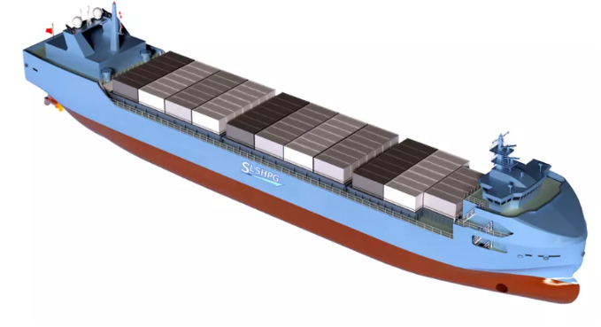智慧航海(青島)科技公司的300TEU(國際標(biāo)準(zhǔn)集裝箱)智能集裝箱船“智飛”號