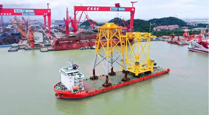 日前,由中國船舶集團旗下廣船國際承建的廣東陽江南鵬島300兆瓦海上風電項目首套導(dǎo)管架及輔助平臺順利交運。這是廣船國際承建并交運的首批首個風電導(dǎo)管架,也是目前國內(nèi)最大的風電導(dǎo)管架,標志著廣船國際在風電業(yè)務(wù)領(lǐng)域?qū)崿F(xiàn)了經(jīng)營、生產(chǎn)、交付全環(huán)節(jié)突破,對后續(xù)承接風電項目業(yè)務(wù)、拓展風電市場具有重要意義。