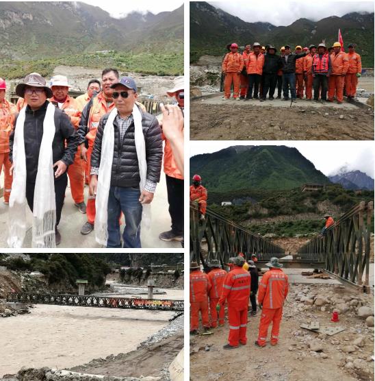 向玉光克服高海拔帶來的高寒缺氧、呼吸急促等高原反應(yīng),馬上投入工作,很快提供了科學的架設(shè)方案,指導(dǎo)那曲救援隊伍在不到六天的時間里成功架設(shè)起一座三排單層48米裝配式公路鋼橋。