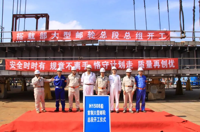 8月21日,中國船舶集團旗下外高橋造船建造的我國首艘國產(chǎn)大型郵輪H1508項目總段總組正式開工建造。