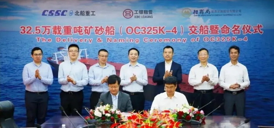 武船集團(tuán)北船重工為工銀租賃和招商輪船建造的32.5萬噸礦砂船4號船“ORE CHONGQING”號命名暨交船儀式在3號碼頭舉行。