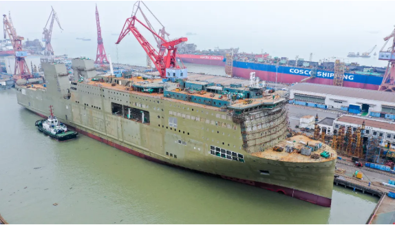 全船共26個總段中23個總段的總組和13個總段的涂裝。這艘船完成了所有上建外板的一度油漆和窗戶涂裝,升降臺、斜坡水密門、斜坡蓋板等均已完成安裝發(fā)電機完成安裝報驗,多個系統(tǒng)完成調(diào)試報驗