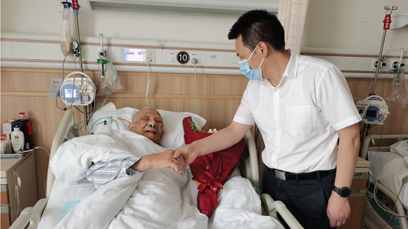七二六所黨委副書記帶隊前往醫(yī)院看望慰問了在醫(yī)院住院治療的離休干部紀炎輝,向他致以崇高的敬意和親切的問候,并送上慰問金。