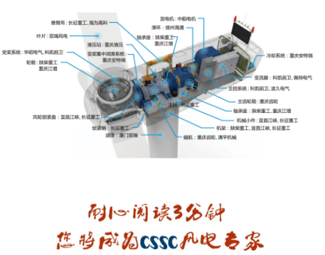中國船舶集團擁有國內實力強勁的自主研發(fā)與生產體系,具備強大的機、電、液、控一體化裝備制造服務保障能力,形成了從葉片、齒輪箱、發(fā)電機、控制系統(tǒng)到機座、機架、塔筒、輪轂等全系列制造能力,從資源開發(fā)、零部件制造、整機研發(fā)、工程安裝、運維服務等全產業(yè)鏈保障能力,是我國唯一具備較完整風電裝備研制生產服務保障體系的專業(yè)化集團。