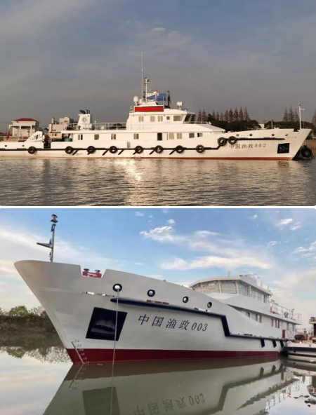 2020年12日26日,“中國漁政002”和“中國漁政003”正式交接兩艘船作為旗艦,自2021年1月1日起開展長江“十年禁漁”漁業(yè)執(zhí)法和保護。兩艘200噸級漁政船為姊妹船