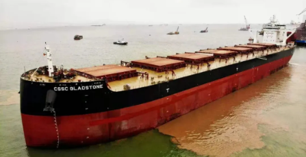 3月29日,中國船舶集團旗下上海船院負(fù)責(zé)詳細(xì)設(shè)計、黃埔文沖建造的第4艘12萬噸散貨船“CSSC GLADSTONE”號交付。