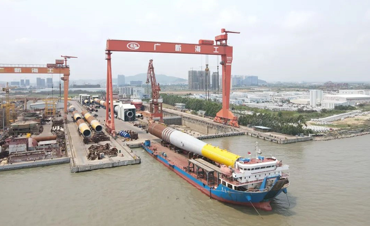 “國(guó)家電投揭陽(yáng)神泉—400MW 海上風(fēng)電項(xiàng)目”首批海上風(fēng)電單樁中的23號(hào)樁交付發(fā)運(yùn),該項(xiàng)目由中國(guó)船舶集團(tuán)旗下黃埔文沖下屬文船重工承建。