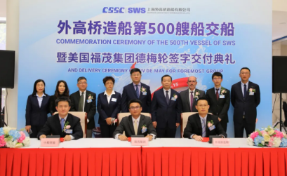 4月15日,由中國(guó)船舶集團(tuán)旗下外高橋造船自主開(kāi)發(fā)、設(shè)計(jì)和建造的21萬(wàn)噸紐卡斯?fàn)栃蜕⒇洿暗旅贰碧?hào)交付美國(guó)福茂集團(tuán)。這是外高橋造船自2003年交付第一艘商品船以來(lái),精心出品的第500艘船,完工總量累計(jì)8968萬(wàn)載重噸,年均27.8艘/498.2萬(wàn)載重噸,位居中國(guó)第一,躋身全球前列。